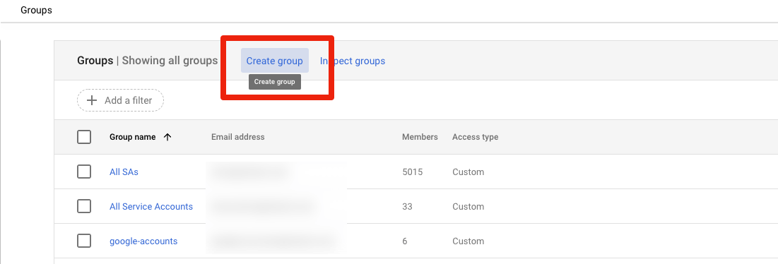 - You should now see a list of your groups (which may be empty). Click on "Create Group":